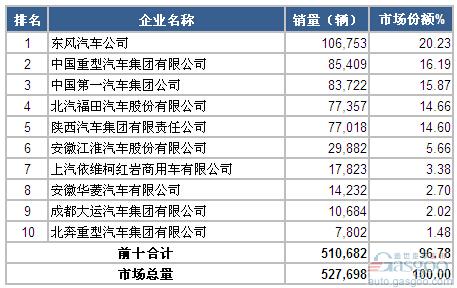 2014年1-8月重型載貨車企銷量前十統(tǒng)計