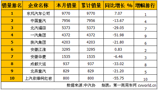 行業(yè)資訊東風(fēng)居首 1月重型卡車銷量排行前十