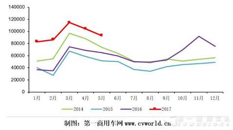 2014-2017年重卡市場(chǎng)月度走勢(shì)圖