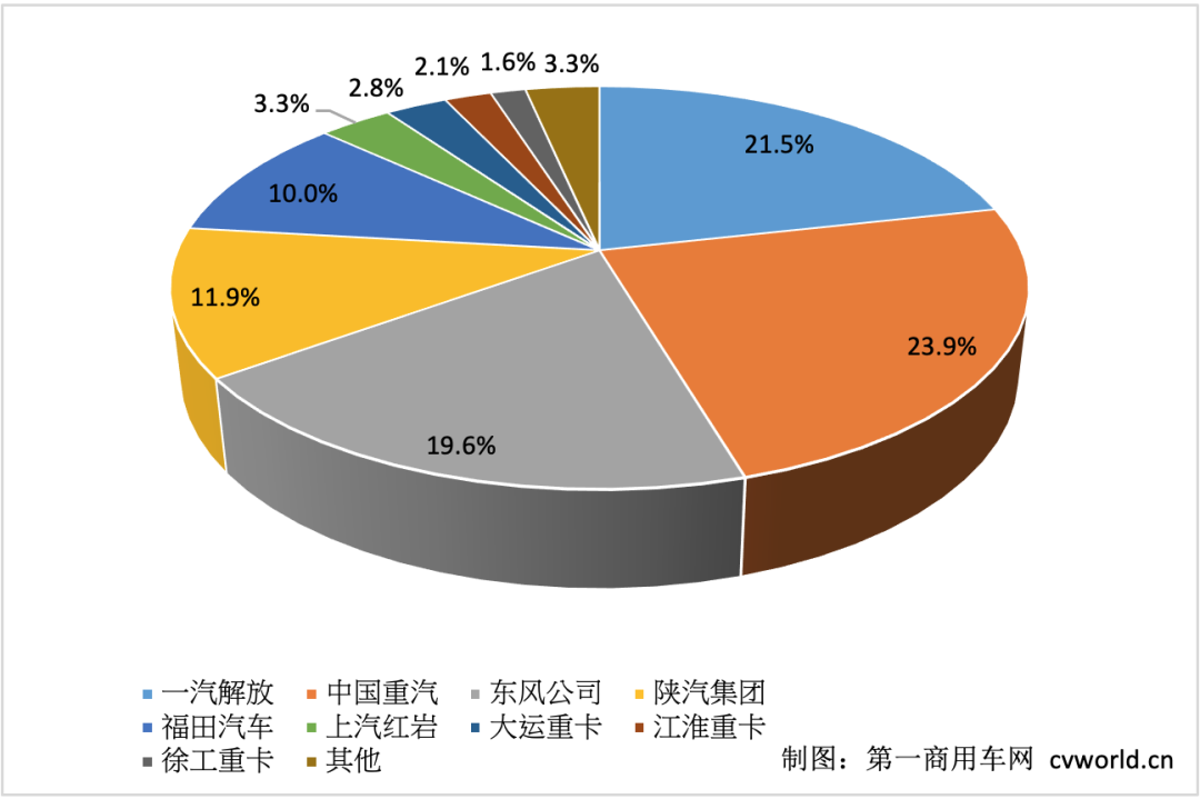 中國(guó)重汽今年4月份銷(xiāo)售重卡約1.15萬(wàn)輛,是當(dāng)月銷(xiāo)量唯一破萬(wàn)的企業(yè);其1-4月累計(jì)銷(xiāo)售6.65萬(wàn)輛,市場(chǎng)占有率上升到23.9%,份額同比上漲了6個(gè)百分點(diǎn)。東風(fēng)公司(包括東風(fēng)商用車(chē)、東風(fēng)柳汽乘龍汽車(chē)等)今年4月份銷(xiāo)售重卡0.95萬(wàn)輛,排名行業(yè)第二;今年1-4月,東風(fēng)公司累計(jì)銷(xiāo)售各類(lèi)重卡5.43萬(wàn)輛,市場(chǎng)占有率為19.6%,同比上升0.8個(gè)百分點(diǎn),累計(jì)銷(xiāo)量仍排名行業(yè)第三。陜汽集團(tuán)4月份銷(xiāo)售各類(lèi)重卡約0.7萬(wàn)輛,年初至今累計(jì)銷(xiāo)售重卡3.3萬(wàn)輛,市場(chǎng)占有率為11.9%。福田汽車(chē)4月份交出了約0.6萬(wàn)輛的“成績(jī)單”,其1-4月累計(jì)銷(xiāo)售2.79萬(wàn)輛,市場(chǎng)占有率約為10%,上升了1.8個(gè)百分點(diǎn)。