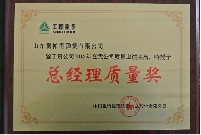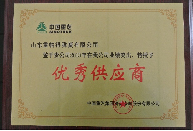 公司再獲中國重汽“優(yōu)秀供應商”、“總經理質量獎”